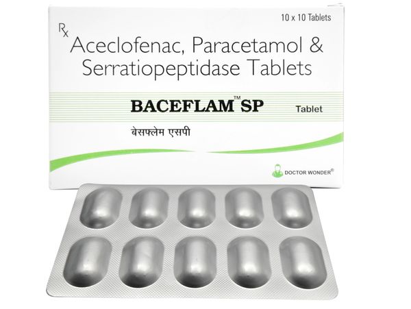 Aceclofenac IP 100mg, Paracetamol IP 325mg, Serratiopeptidase IP 15mg